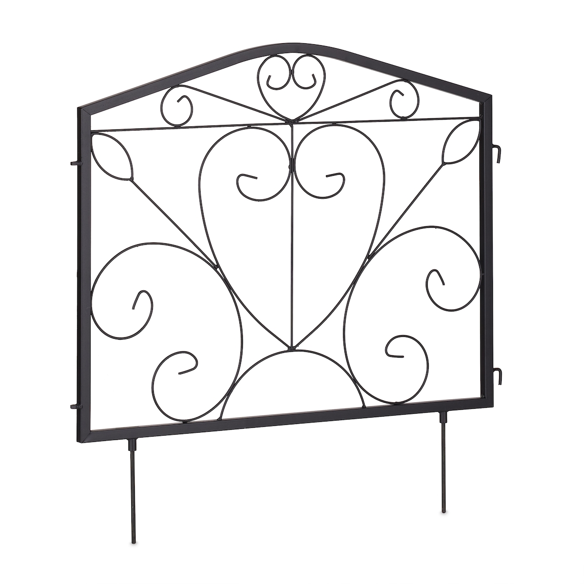 Relaxdays Beetzaun, je HxB: 60 x 60 cm, Metall, Garten Beeteinfassung zum Stecken, 4 dekorative Zaunelemente, schwarz
