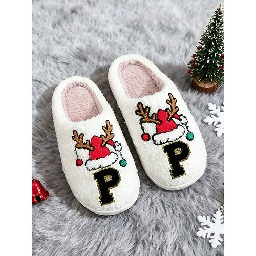 comode pantofole natalizie da donna con design a renna: morbide pantofole con 26 lettere tra cui scegliere, a tema natalizio, perfette per rilassarsi e come regalo