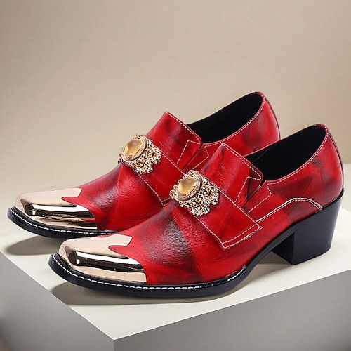 mocassini da uomo in pelle di serpente rossa con cinturino e dettagli dorati: look unico e alla moda, ideali per occasioni speciali di Natale e riunioni di festa a tema natalizio