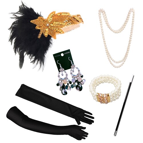 Set Retrò Vintage Anni Ruggenti Anni 1920 Fascia Flapper Copricapo Set di accessori Il grande Gatsby Ragazza Flapper Piuma Costume Per donna Natale Carnevale Mascherata Festa a tema retrò Danza
