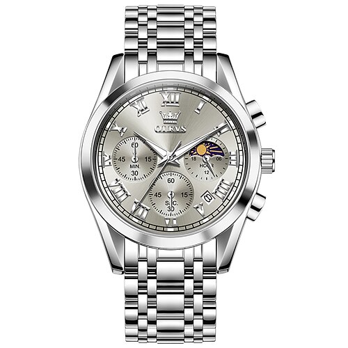 OLEVS Da uomo Orologio al quarzo Lusso Quadrante grande Di tendenza Lavoro Visualizzazione delle fasi lunari Luminoso Calendario Impermeabile Lega Guarda