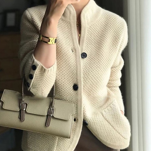 Per donna Felpa Cardigan Elegante Streetwear Tinta unica Treccia Collo alla coreana Tasca Bottoni Lavorato a maglia Manica Lunga Top Regolari Maglia Quotidiano Ferie Uscire Cammello Beige Autunno