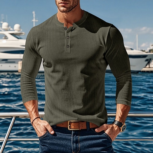 Per uomo Maglietta Camicia di Velluto a Coste Manica Lunga Semplice Striscia di Fossa Tinta unita Moda Designer Essenziale Cardigan con Bottoni Caldo Henley Casuale Vacanza Streetwear Primavera