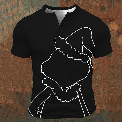 maglietta di natale stampe grafiche del fumetto moda casual di base camicia henley con stampa 3d da uomo graphic tee camicia vintage all'aperto maglietta per uscire tutti i giorni nero bianco verde