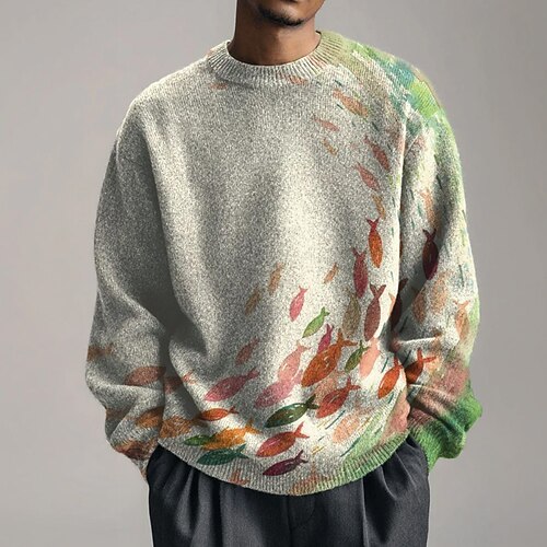 Per uomo Floreale Animale Maglione Maglieria Girocollo Casual Vacanza Casa Quotidiano Stampa 3D Lavoro a maglia Tenere al caldo Manica Lunga Primavera Autunno Inverno Nero Bianco Rosa