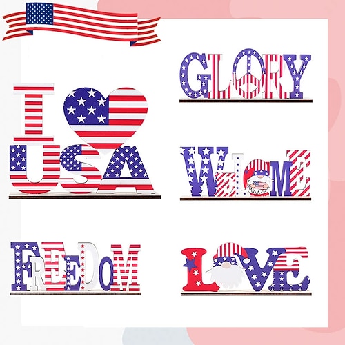 Confezione da 5 per il giorno dell'indipendenza, festa nazionale degli Stati Uniti, decorazioni da tavolo in legno con lettere, importante festa per la liberazione americana