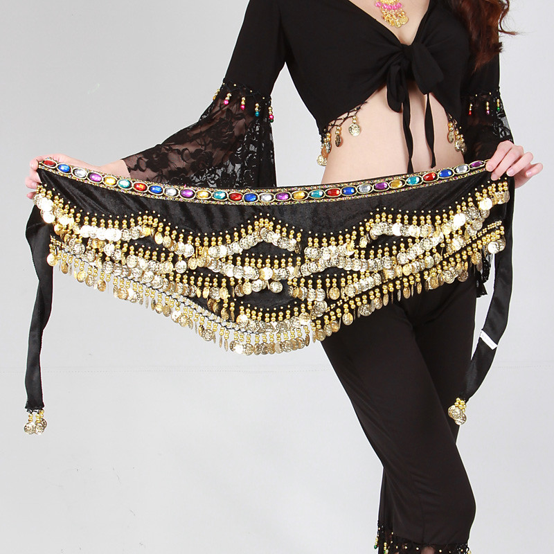 Dance Waist Belt, 3-Row Gold Coin Belly Dance Hip Scarf for Performance Practice
