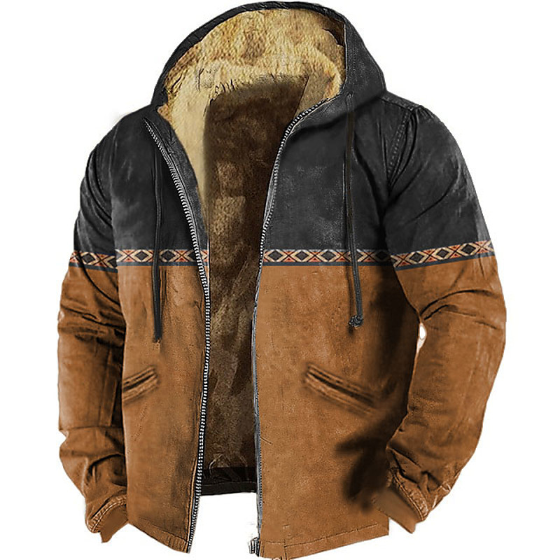 Men's Aztec Fleece Hoodie Jacket Sweatshirt Ethnic Classic Vintage Retro Crew Neck Outdoor Travel Camping Red Blue Green Zip Up Fall Winter Designer S M L XL 2XL 3XL