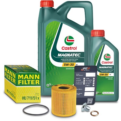 Mann-filter Ölfilter+Schraube+6 L Castrol Magnatec 5W-30 A5 [Hersteller-Nr. 10491844] für Volvo, Ford