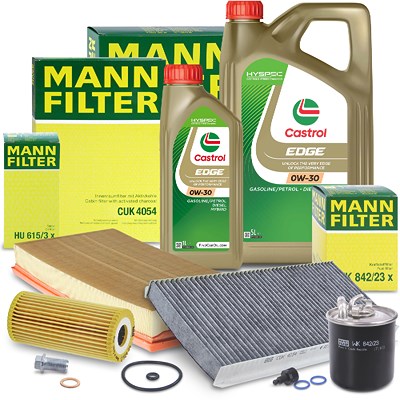 Mann-filter Inspektionspaket B + 6 L CASTROL EDGE FST 0W-30 [Hersteller-Nr. 10493198] für Mercedes-Benz