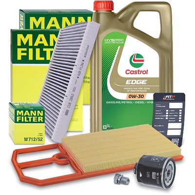 Mann-filter Inspektionspaket A + 5L CASTROL EDGE FST 0W-30 [Hersteller-Nr. 10492853] für VW, Skoda