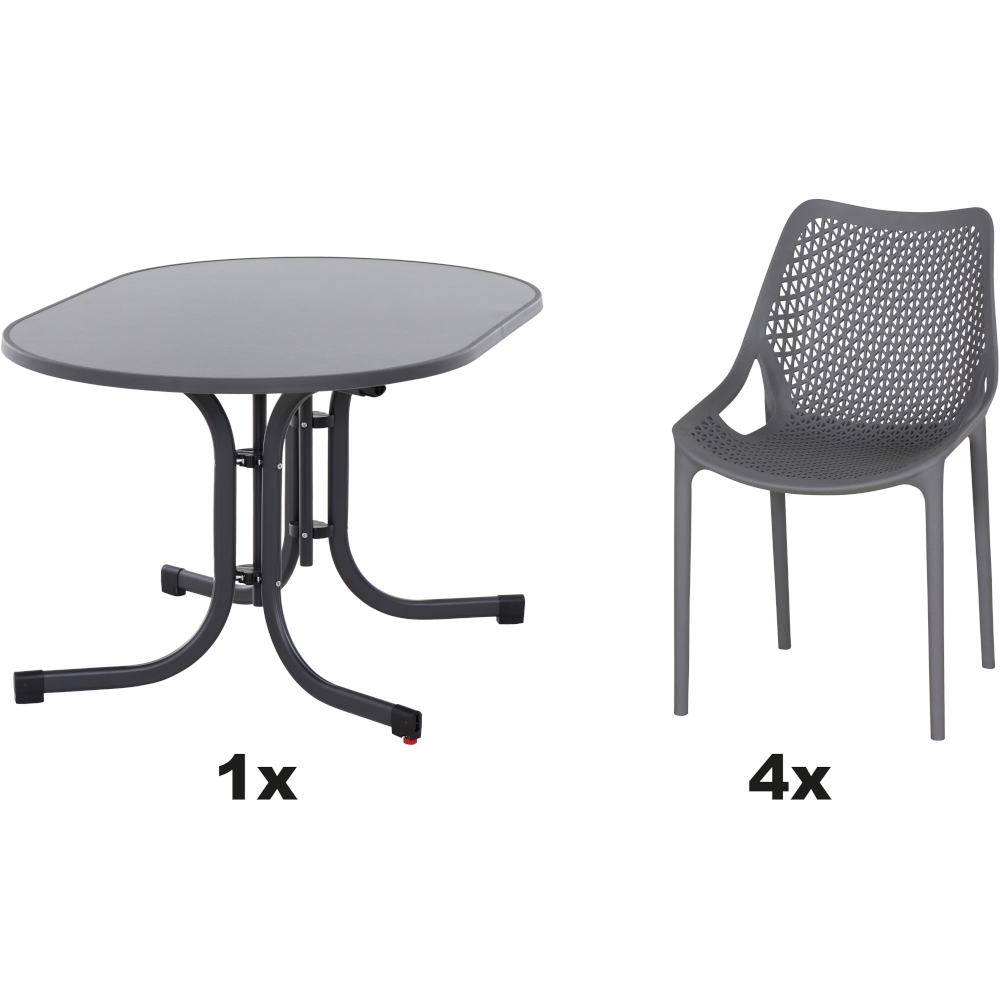 SIENA GARDEN Urban Lights Set 5teilig District gastrotauglich grau mit Tisch Paco 140x90