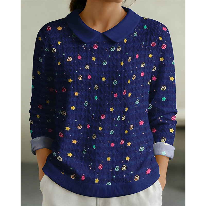 Women's Pullover Sweatshirt Graphic Plain Elegant Warm Fashion Long Sleeve Lapel Regular Tops Home Work Street Patchwork Print Blue Sapphire Pink Dark Green Light Purple Fall Winter