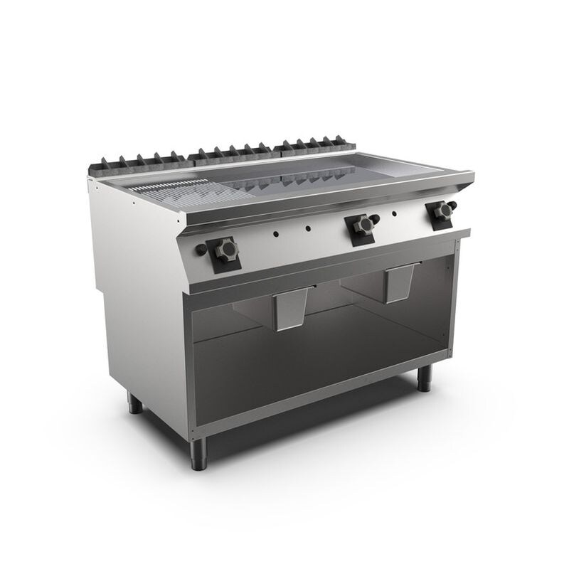 Mareno M1-700 Gas-Grillplatte mit 2/3 glatter und 1/3 gerippter Chromplatte, 120cm