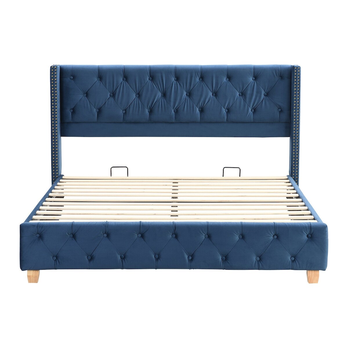 Merax Polsterbett, Massivholz Doppelbett 160x200cm mit Lattenrost und Polster-Kopfteil, Samt, blau