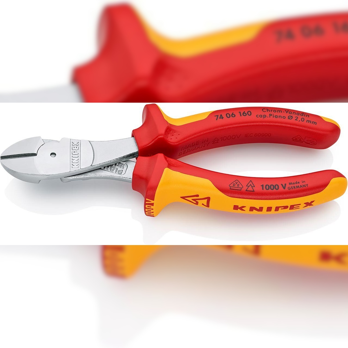 KNIPEX Kraft-Seitenschneider, verchromt, isoliert 160 mm