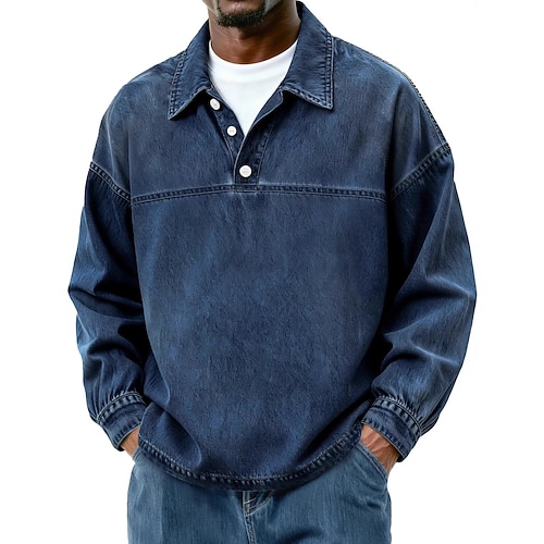 Per uomo Maglia Henley Camicia 100% cotone lavaggio acido Manica Lunga Henley Primavera Autunno Tutte le stagioni Vintage Retrò Vintage Casual Stile Vintage Lavato Casuale Blu Marrone Grigio
