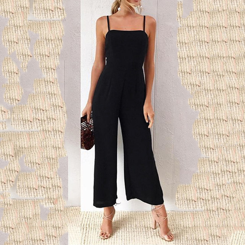 Women's Normal Jumpsuit Active Solid Color Sleeveless Wide Leg Square Neck Daily Vacation Regular Fit Black Yellow Wine Summer