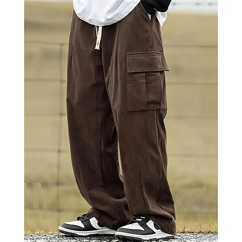 Herren Jogginghose Cordhose Hose Cargo-Jogginghose Kordelzug Tasche Elastischer Bund Einfach Komfort Sport im Freien Täglich Mode Lässig Schwarz Kamel Mikroelastisch