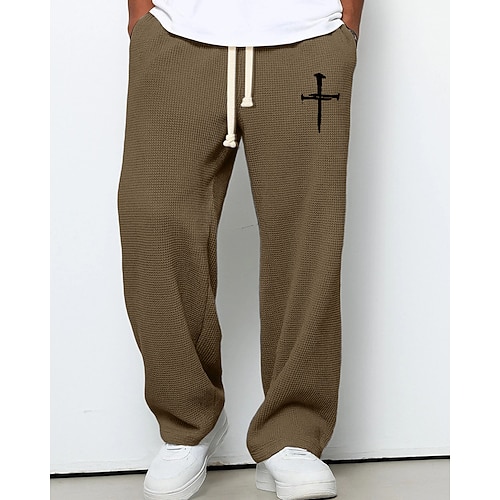 Herren Jogginghose Hose Gerade geschnittene Sweatpants Waffelhose Kordelzug Tasche Elastischer Bund Kreuz Komfort Sport im Freien Täglich Mode Lässig Dunkelbraun Schwarz Mikroelastisch