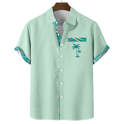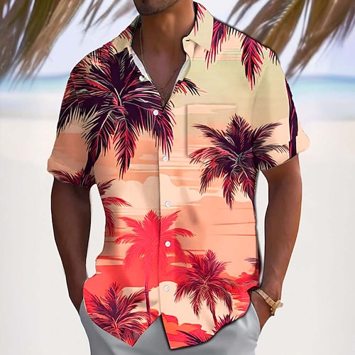 Per uomo Camicia camicia di lino Camicia da spiaggia Camicia hawaiana Albero di cocco Esterno Strada Nero Rosa Verde Grigio Maniche corte Collo ripiegabile Estate Primavera Abbigliamento Stampa