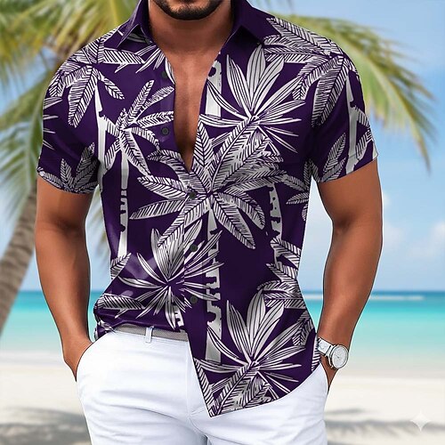 Per uomo Albero di Cocco Piante Tropicali Camicia hawaiana estiva Camicia con Bottoni Camicia Aloha Manica Corta Hawaiano Ferie Abbigliamento mare Estate Primavera Collo ripiegato Stampa 3D camicie