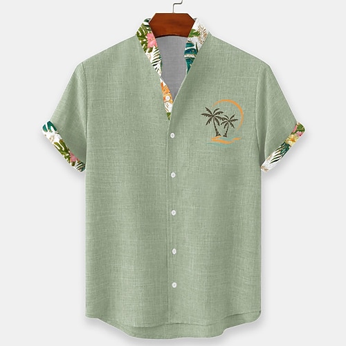 Per uomo Albero di Cocco Piante Tropicali Camicia di lino Camicia da Spiaggia Camicia hawaiana estiva Manica Corta Hawaiano Vacanza Ferie Abbigliamento mare Estate Primavera Colletto camicie con