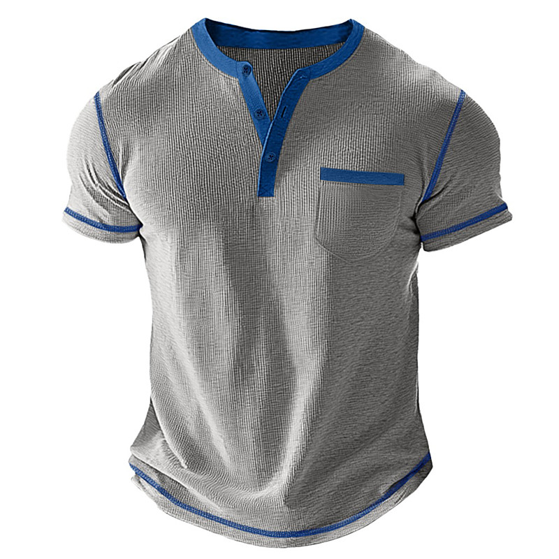 Men's Waffle Henley Shirt Tee Short Sleeve Solid Color Plain Fashion Designer Casual Color Block Buttons Henley Outdoor Casual Daily Summer All Seasons Black White Light Blue Henley T-Shirt