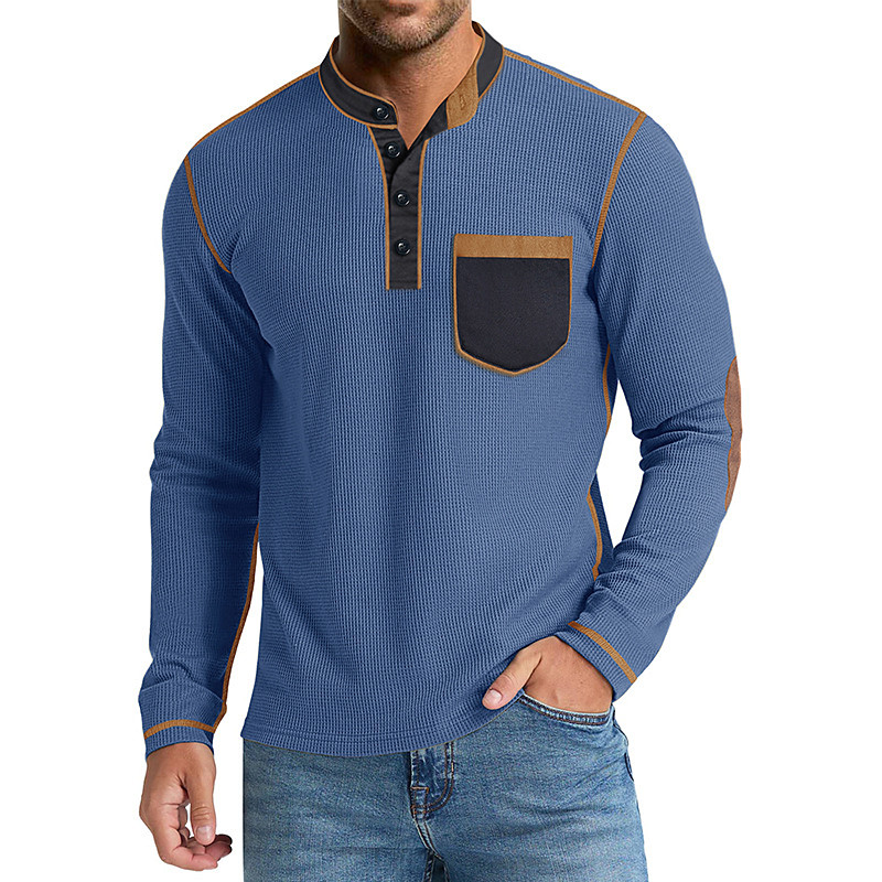 Men's Waffle Henley Shirt Tee Shirts With Elbow Patches Long Sleeve Henley Summer Fall Winter Solid Color Plain Fashion Designer Casual Vintage Style Color Block Casual Daily Outdoor Light Blue Dark