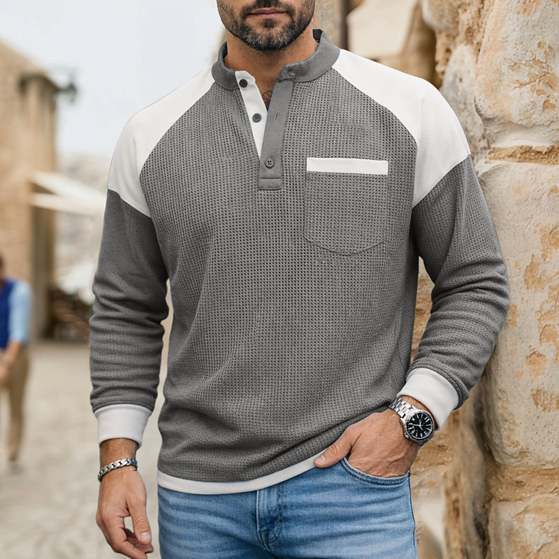 Men's Waffle T-shirt T Shirt Long Sleeve Henley Fall Fall Winter All Seasons Solid Color Textured Traditional / Vintage Casual Patchwork Casual Home Outdoor Light Blue Black Light Green Top Tee for