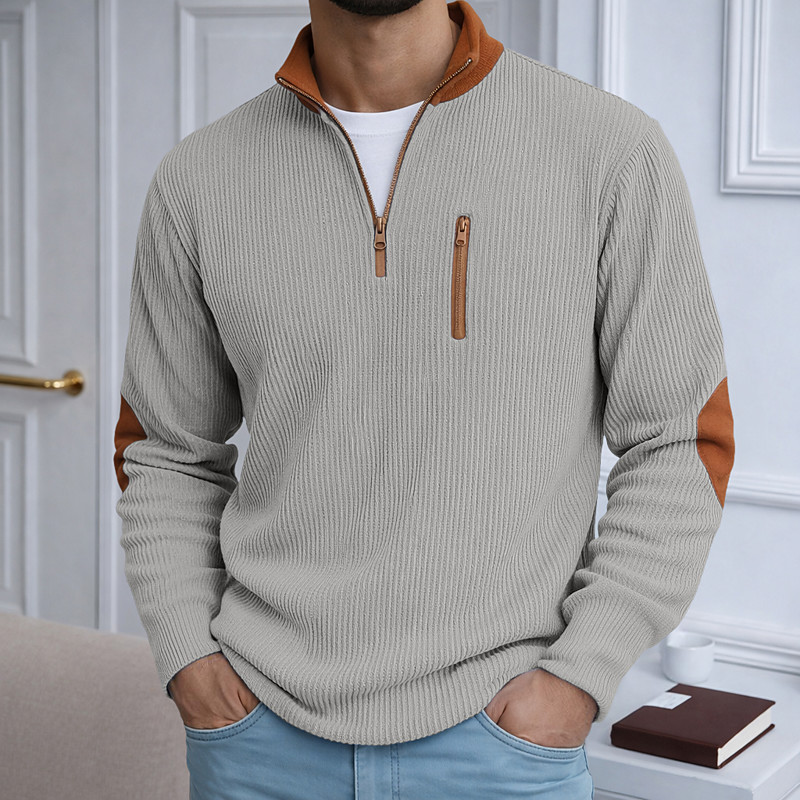 Men's Corduroy Shirt Tee Top Long Sleeve Shirt Long Sleeve Zip Fall Winter Color Block Daily Textured Casual Zip Up Oversized Loose Casual Outdoor Street Light Blue Black Dark Blue Top Tee for Men