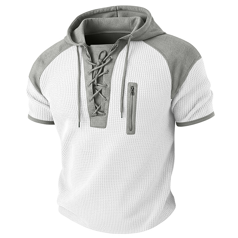 Men's Waffle Henley Shirt Tee Top Short Sleeve Hooded Lace Up Neck Summer Spring All Seasons Solid Color Fashion Designer Casual Color Block Casual Daily Outdoor Light Blue Black White Top Tee for Men