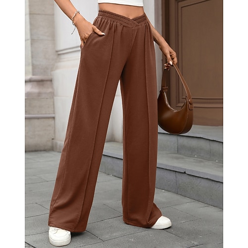 Per donna Gamba larga Pantaloni Eleganti Streetwear Casual Lunghezza intera Naturale Semplice Tasca Elastico in vita Confortevole Streetwear Ferie Weekend Grigio scuro Giacinto Nero Marrone Autunno