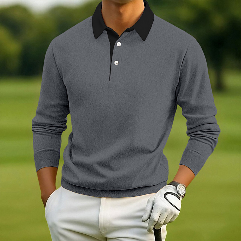 Men's Polo Shirts Golf Polos Shirts Business Casual Lapel Classic Long Sleeve Fashion Basic Solid Color Pocket Color Block Fall Winter Regular Fit Dark Brown Black Pink Yellow Dark Blue Gray Polo