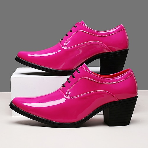 scarpe da uomo in similpelle con tacco alto – finitura lucida, punta affilata, comodo tacco medio, design elegante per feste, ufficio, matrimoni e abiti da sera