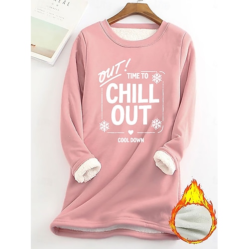 Per donna Pigiama felpato foderato in pile Felpa Pullover Pullover Felpe Lettera Caldo Streetwear Casual Manica Lunga Girocollo Top lunghi Casa Abbigliamento Quotidiano Casuale Stampato Giallo Rosa