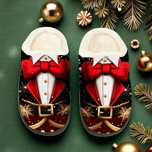 Weihnachtspantoffeln für Herren – festliches Design mit roter Fliege, warme Fleece-Hausschuhe, gemütliche Hausschuhe für Winter und Weihnachten