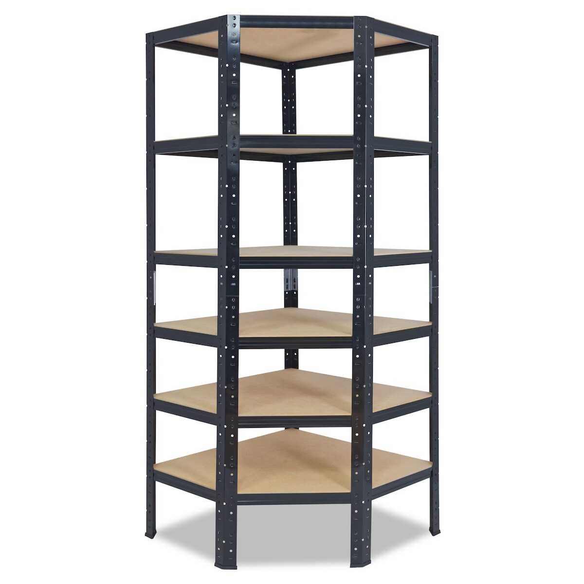 shelfplaza BLACK 200x70x40 cm Eckregal in schwarz mit 6 Böden und 145 kg Traglast pro Boden
