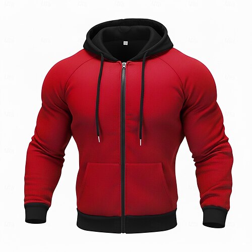 Per uomo Felpa con cappuccio a zip intera Felpa con cappuccio e zip Sherpa morbido Felpa con cappuccio in pile Nero Rosso Verde Grigio chiaro Grigio scuro Con Cappuccio Semplice Con zip Cerniera Tasca