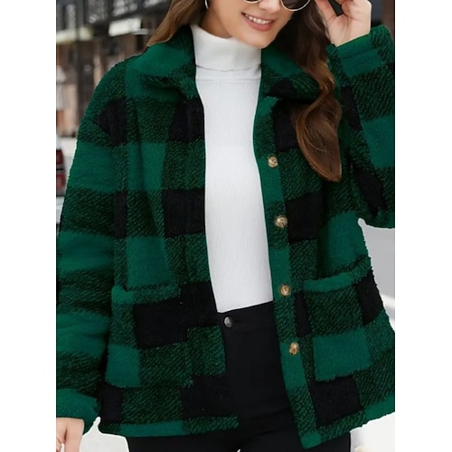 Per donna Cappotto Invernale Giacca Sherpa Confortevole Traspirante Tasca Bottoni Stampato Casual Plaid Vacanza Streetwear Casuale Abbigliamento quotidiano Monopetto Regolare Collo ripiegato