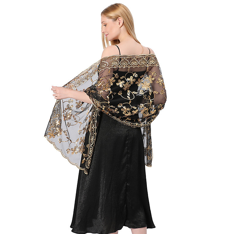 Ladiery Sequin Floral Shawls and Wraps for Evening Dresses,Women sparkly Sheer Mesh Wedding Shawls for Evening Party