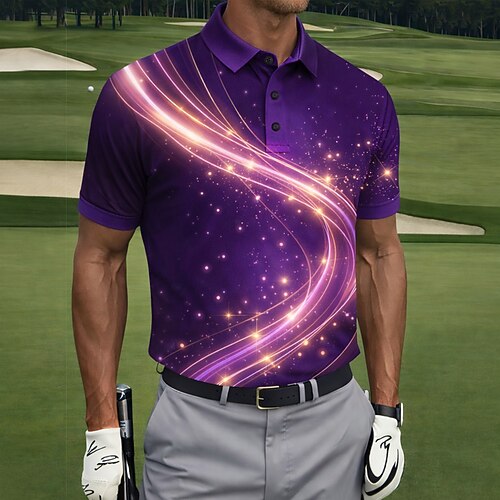 Per uomo Astratto Golf Polo Sportivi Manica Corta Magliette polo Camicie con Colletto Casual Athleisure Bottoni Estate Primavera Blu Viola Oro