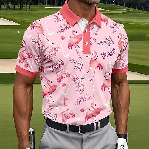 Per uomo Animale Golf Polo Polo Sportivi Manica Corta Magliette polo Camicie con Colletto Casual Athleisure Bottoni Primavera Estate Bianco Rosa