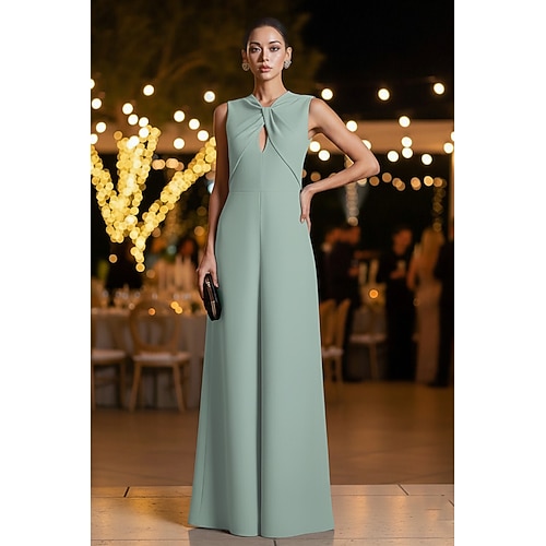 Tute Tubino Colonna Lunghezza al pavimento Abito da cerimonia per signora Senza Maniche Scollo a V Elegante Semplice Cocktail Formale Ospite di nozze Raso con Incrociato Tinta unita