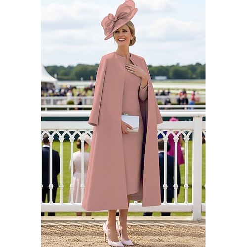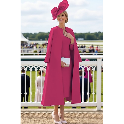 Due Pezzi Tubino Colonna Lunghezza al ginocchio Abito Derby Abito da cerimonia per signora Manica Lunga Girocollo Elegante Derby del Kentucky Tessuto Elasticizzato Abiti con Giacca con Tinta unita