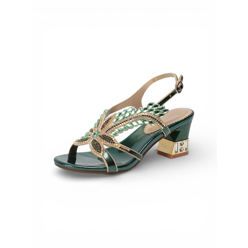 Women's Emerald Green Embellished Heeled Sandals, Elegant Open-Toe Dress Shoes for Mother Attending a City Fashion Wedding