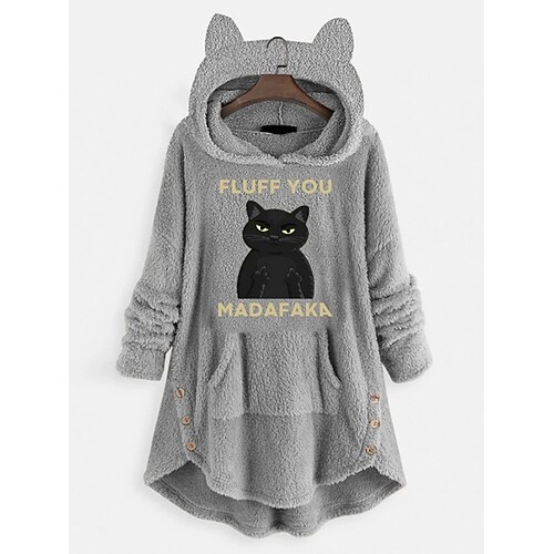 Per donna Felpa con cappuccio Gatto Lettera Casual Manica Lunga Con Cappuccio Top corti Streetwear Abbigliamento Quotidiano Casuale Rosa Vino Grigio Autunno Inverno