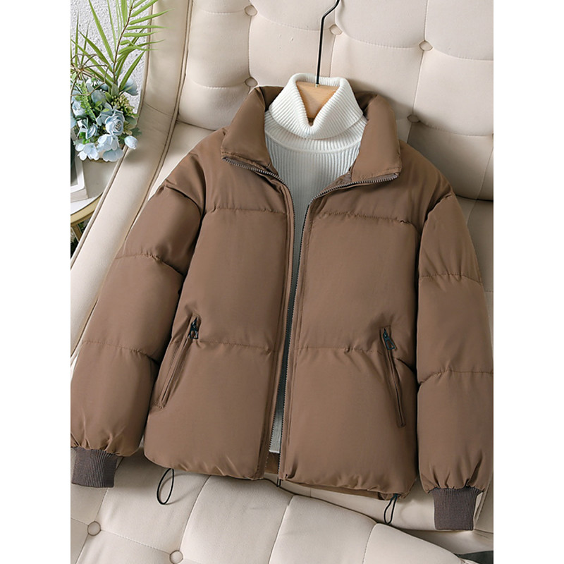 Women's Down Jacket Comfortable Breathable Zipper Pocket Casual Plain Vacation Street Casual Daily Wear Zipper Short Turndown Regular Fit Long Sleeve Outerwear Black White Khaki Spring Fall