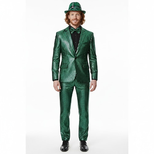San Patrizio Disco Irlandese fortunato Carnevale Costume di fantasia Completi Blazer Anni '80 Metallico Lucido Adulti Per uomo Giorno di San Patrizio Club Performance Festa a tema retrò Costume di