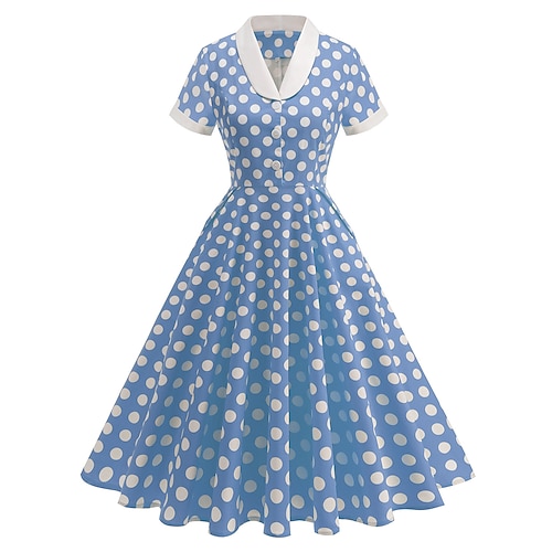 Retrò Vintage Anni 1950 Hepburn Midi Vestito Abito a trapezio Vestito Svasato Maniche corte Pois Aderente Svasato Costume Per donna Carnevale San Valentino Casuale Ritorno a casa Festa a tema retrò